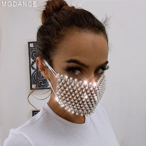 Fashion Pearl Masks Party Show Costume Performance Evening Club Dance Wear Singer Costume Stones Mask