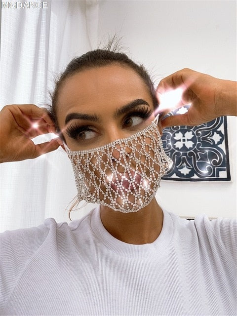 Fashion Pearl Masks Party Show Costume Performance Evening Club Dance Wear Singer Costume Stones Mask